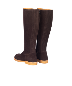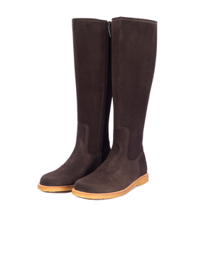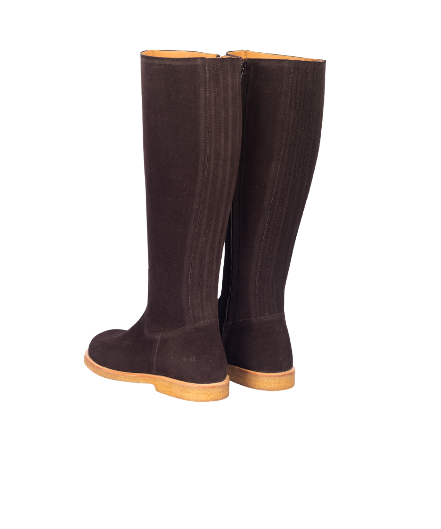 Angulus - Brun lang støvle i ruskind, bred pasform