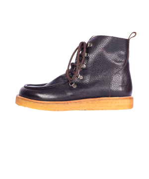 Med sin brede pasform og runde snude får du god plads til fødderne, mens den justerbare snørelukning med oxideret sølv-hardware giver et klassisk og stilrent udtryk. Dekorative stikninger og et præget logo ved hælen tilføjer eksklusive detaljer, der understreger støvlens håndværksmæssige kvalitet.