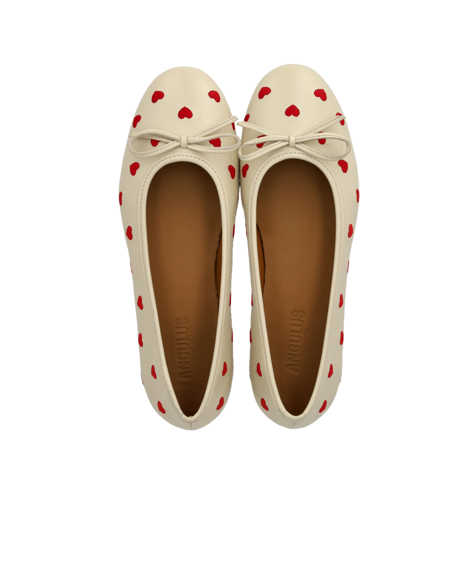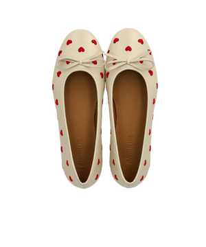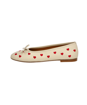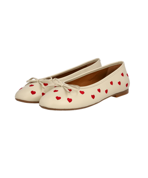Angulus Ballerina 1732-101-1502 – Lys cremefarvet ballerina med røde hjerter (str. 43-45)