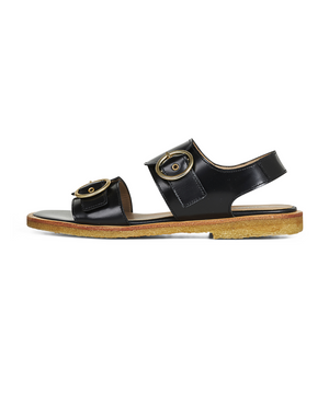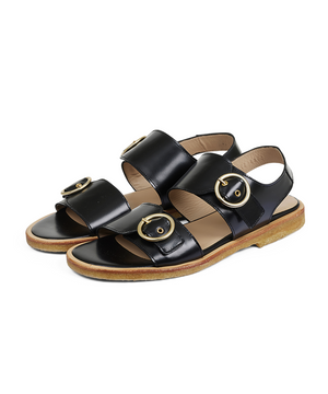 Sandalen har en klassisk rund snude og justerbare remme med smukke, markante guldspænder, så du nemt kan tilpasse pasformen. Den polstrede læderindersål giver ekstra komfort, og den lette, fleksible ydersål i rågummi af fornybart naturgummi giver en naturlig og behagelig gangoplevelse.