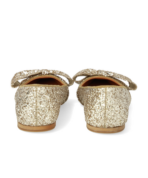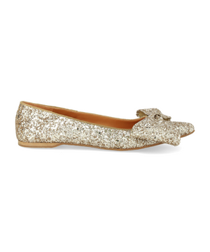 Denne sløjfeballerina er skabt med naturligt og åndbart skind med en kanvasbaseret glittereffekt, der giver et funklende finish uden at gå på kompromis med komforten. Indvendigt er ballerinaen foret med kromfrit læderfoer, hvilket gør den ekstra skånsom mod fødderne. Den vatterede indersål sikrer optimal støtte, så du kan gå ubesværet hele dagen.