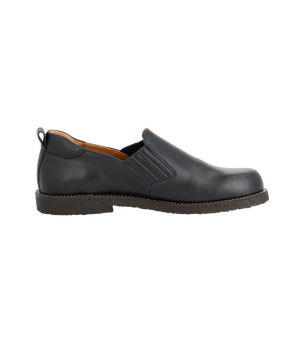 Denne stilrene sko er fremstillet i naturligt og åndbart skind, som former sig efter foden og sikrer en behagelig pasform hele dagen. Den runde snude giver ekstra plads til tæerne, mens den brede pasform gør modellen særligt komfortabel for dig, der ønsker lidt mere rummelighed i skoen.