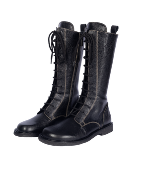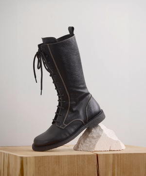 Designet er fuldendt med kontraststikninger, præget logo ved hælen og et højt skaft med både justerbar snørelukning og praktisk lynlås – så støvlen er nem at tage af og på. Den bløde, fleksible rågummisål i FSC-certificeret naturgummi giver et sikkert fodfæste og en let, naturlig gangoplevelse.