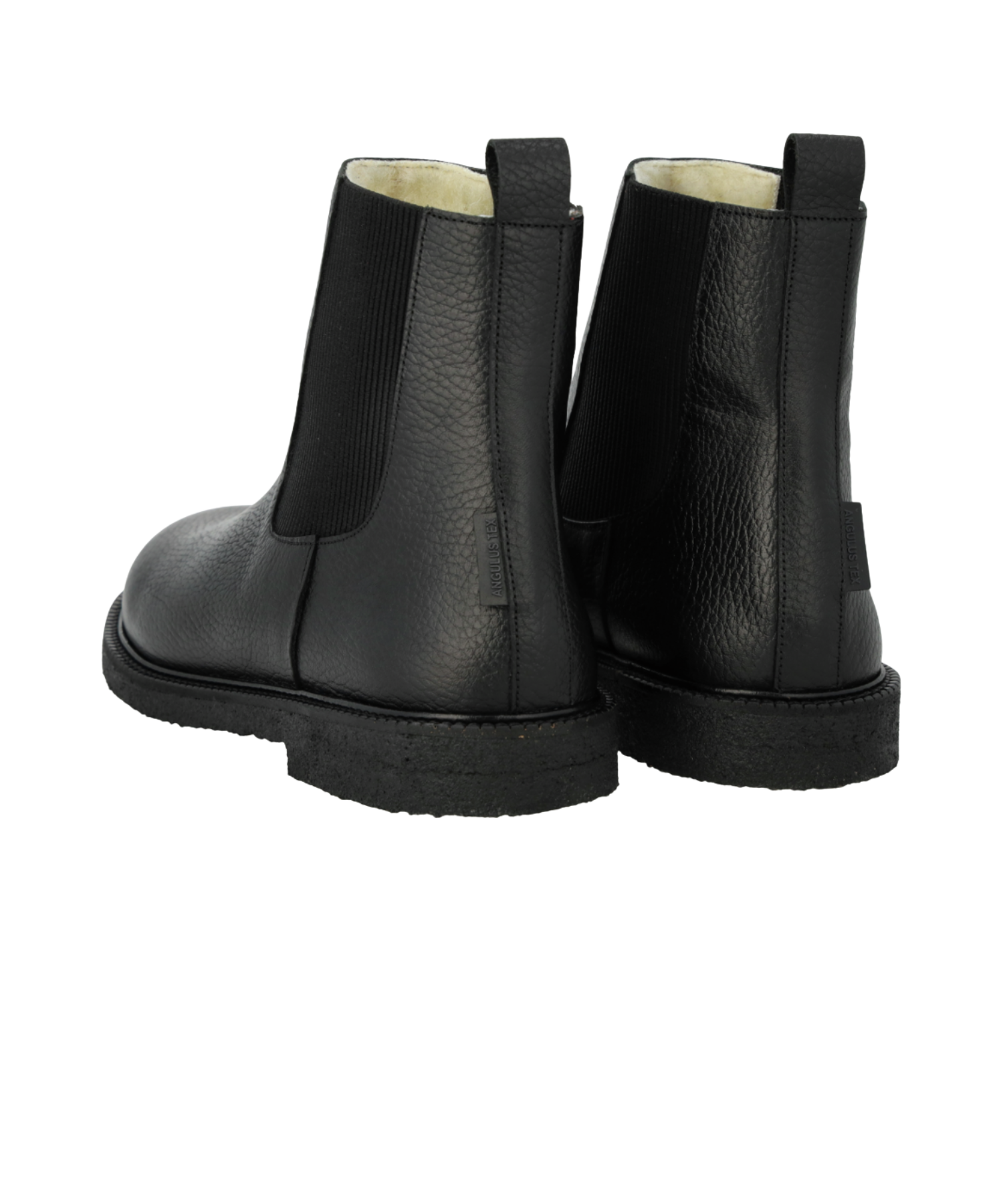 Støvlen har en sort FSC-certificeret rågummisål i fornybart naturgummi, som er både fleksibel, let og slidstærk. Den runde snude og det ankelhøje skaft med ribelastik giver en klassisk silhuet, mens hælstroppen gør det nemt at få støvlen af og på. Den vatterede indersål sikrer høj komfort hele dagen.