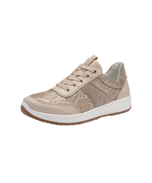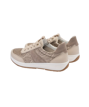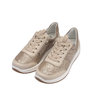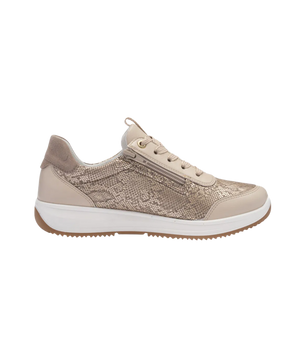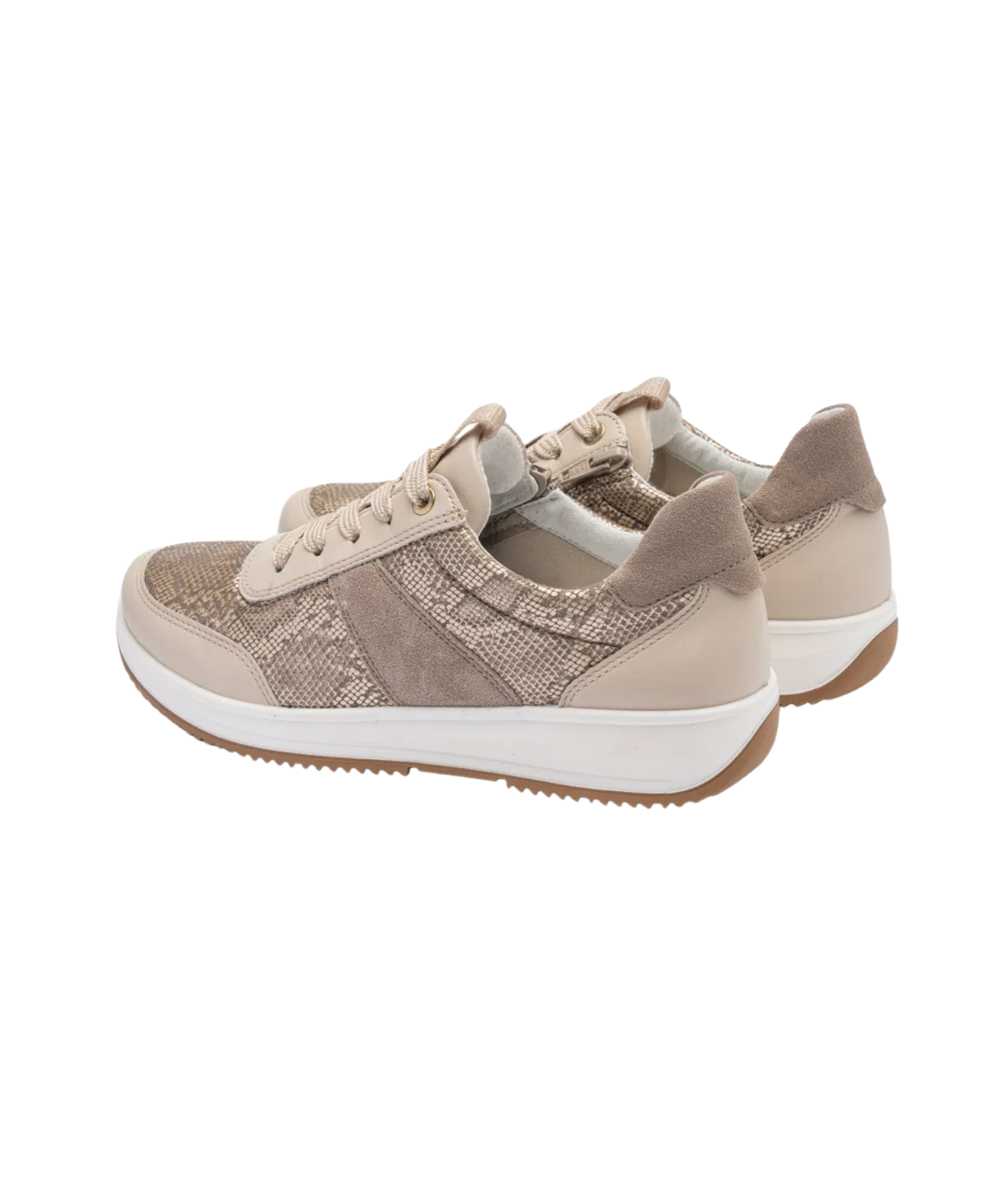 Disse sneakers imponerer med et eksklusivt reptil-look og en blød materialemix, der tilpasser sig foden. Den ekstra brede pasform (vidde H) giver god plads til fødderne, hvilket gør skoen særligt velegnet til dig, der har brug for lidt mere rummelighed i hverdagen.