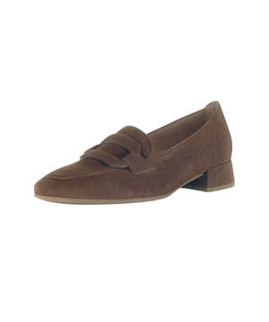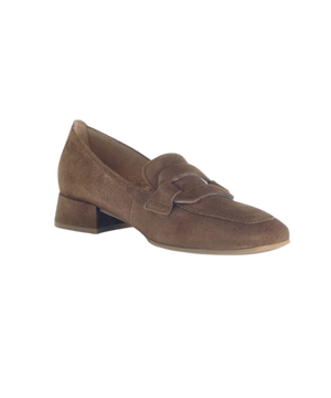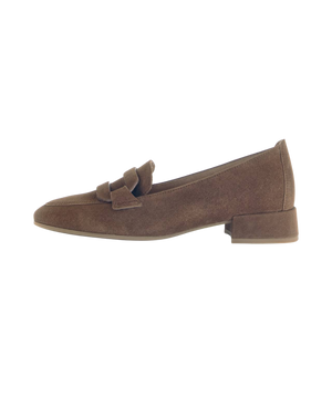 Loaferen er fremstillet i smukt, blødt ruskind i en varm brun nuance, som passer perfekt til både hverdag og finere anledninger. Den indvendige foring i læder sikrer en behagelig og åndbar oplevelse hele dagen, mens den diskrete hælhøjde på 3 cm giver et elegant løft uden at gå på kompromis med komforten.