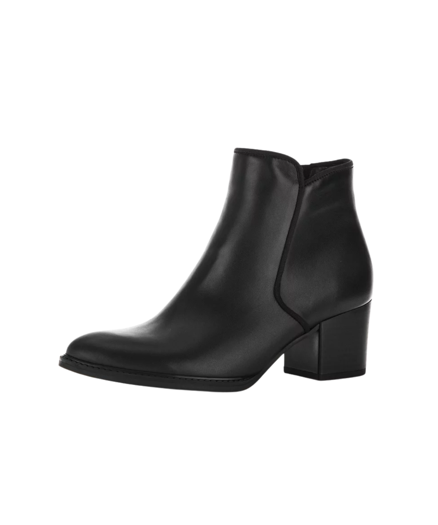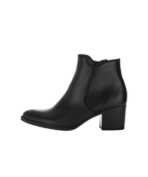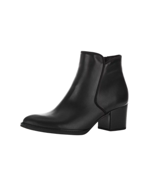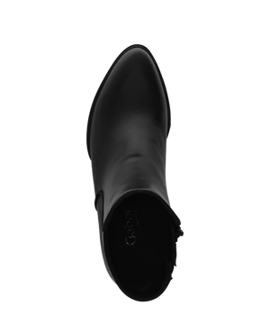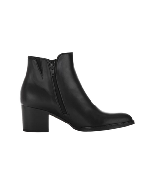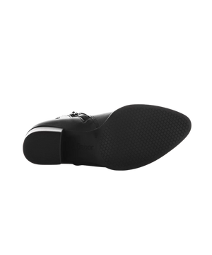 Støvletten har en hælhøjde på 6 cm, der giver et let løft uden at gå på kompromis med komforten – ideel til både hverdag og festlige lejligheder. Det glatte sorte skind giver et tidløst og sofistikeret look, der passer til enhver garderobe og nemt kan kombineres med både kjoler, nederdele og bukser.