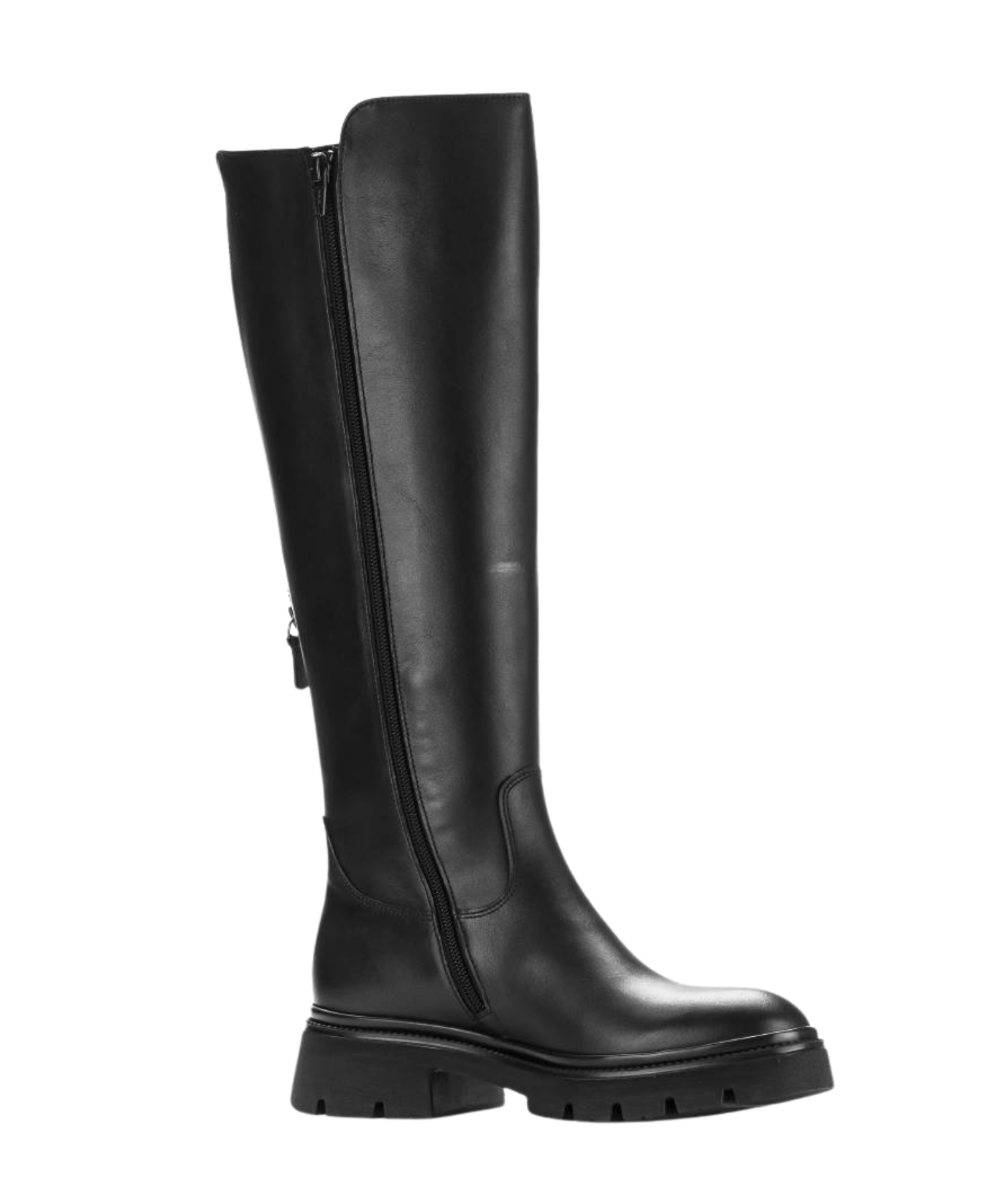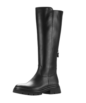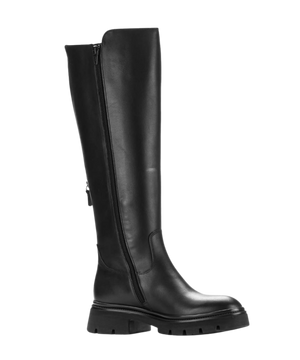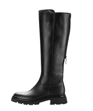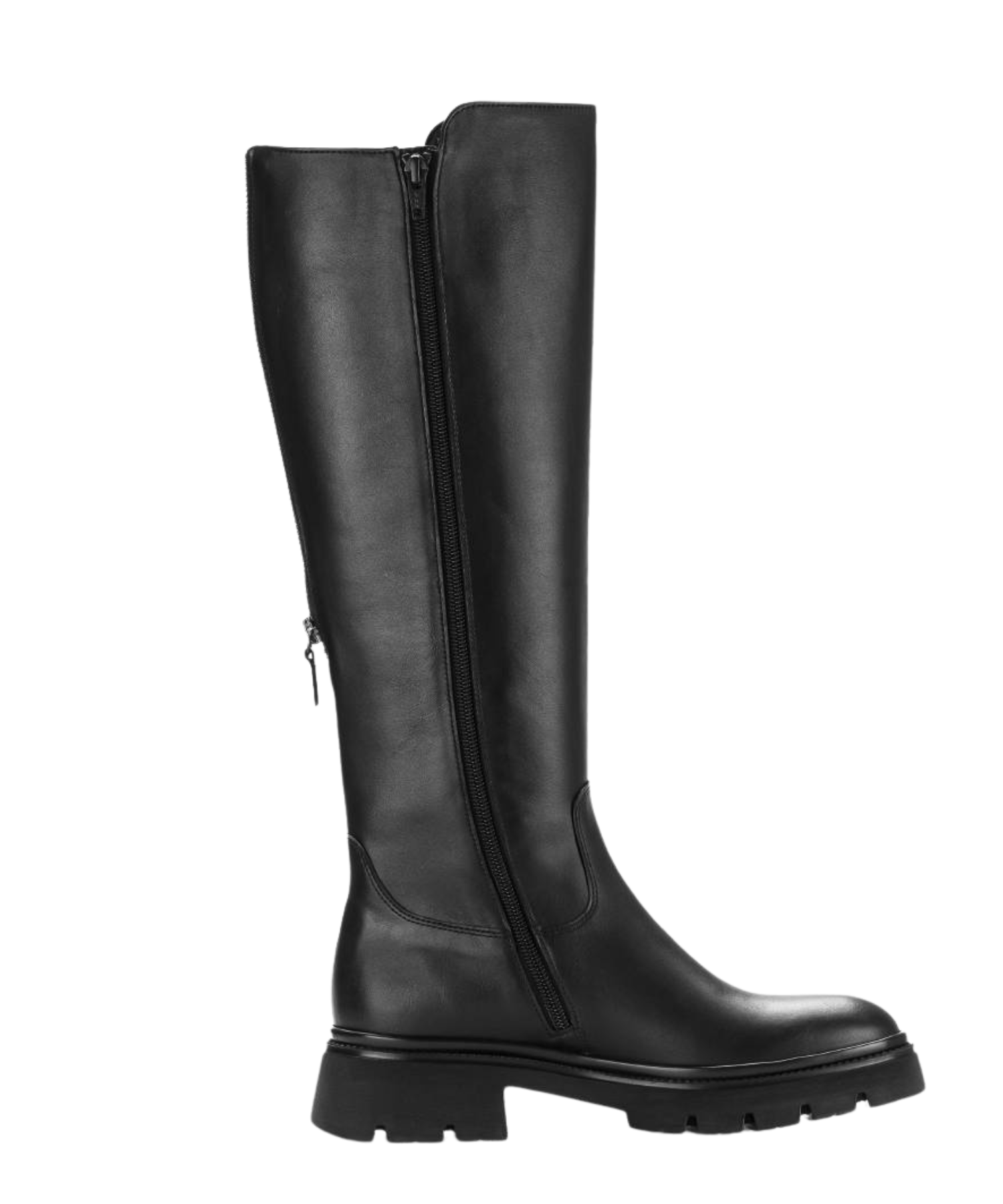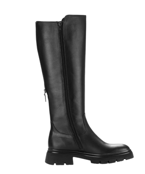 Støvlen er fremstillet i blødt sort læder og har en praktisk lynlås bagpå, som giver ekstra vidde ved læggen – ideel hvis du har brug for lidt mere plads. Med en hæl på 30 mm får du et let løft, samtidig med at komforten bevares.