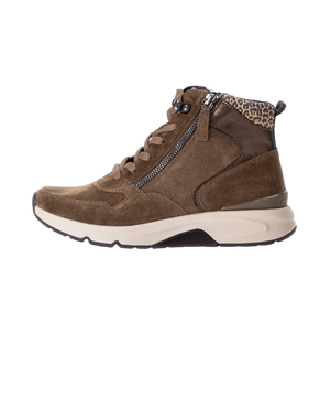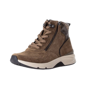 Støvlen er nem at tage på takket være den smarte kombination af snørebånd og praktisk lynlås i siden. Den innovative Rollingsoft-sål støtter fodens naturlige bevægelse og sikrer en behagelig, rullende gang – perfekt til både hverdag og længere gåture.