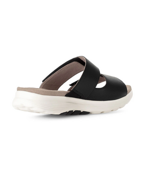 Komfortabel sort skindsandal med velcro – fås i store størrelser (str. 43-44)