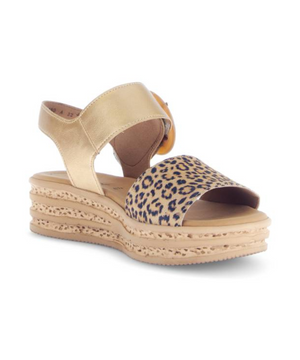 Denne Gabor sandal kombinerer et moderne udtryk med høj komfort. Den har et flot leopardmønster foran, som tilføjer et trendy touch til ethvert outfit. Den runde spids giver et feminint look, mens den 4,5 cm kilehæl sikrer en behagelig gang hele dagen.