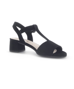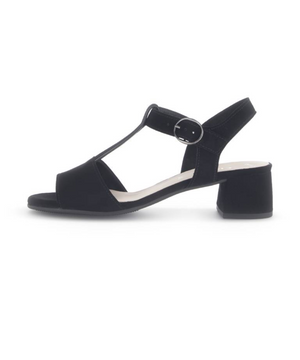 Denne Gabor damesandal er designet i sort læder med en elegant og tidløs stil, der passer perfekt til både hverdag og festlige lejligheder. Med en fleksibel sål og en blød indersål sikrer sandalen optimal komfort hele dagen.