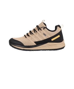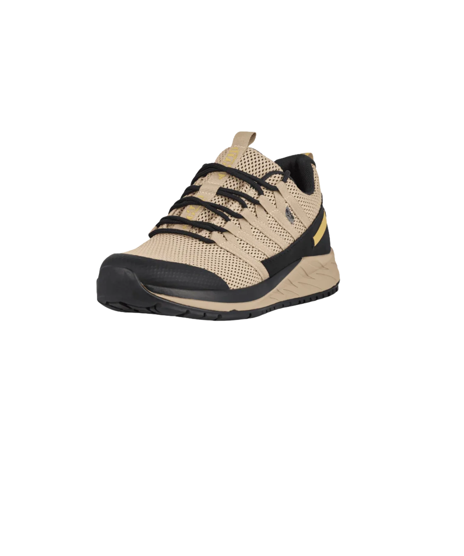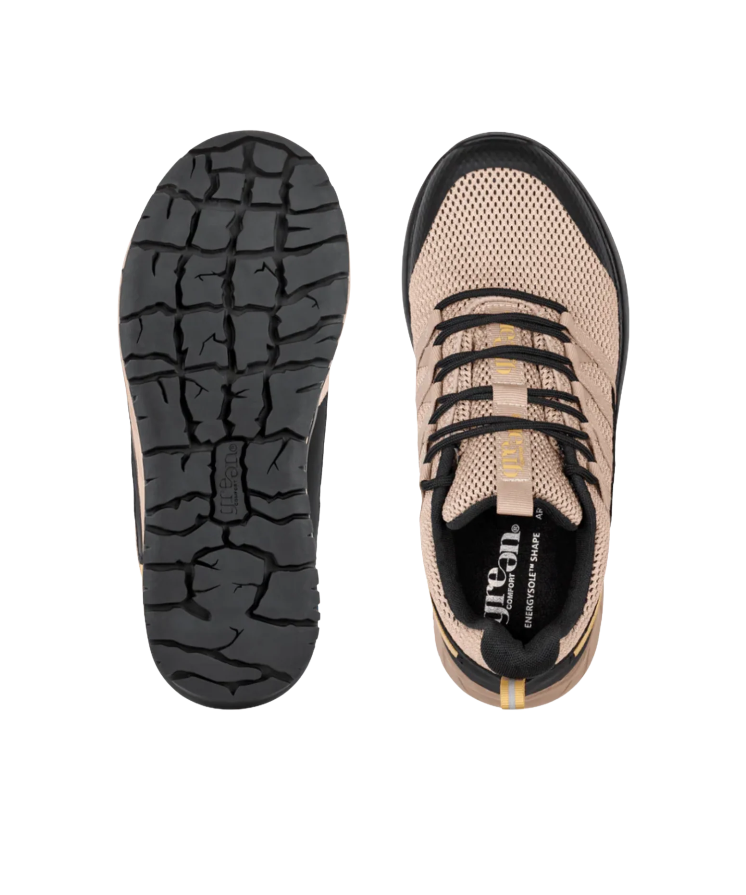 Skoene er fremstillet i åndbart mesh, som sikrer et behageligt fodklima hele dagen. Det bløde DRI-LEX ECO foer, lavet af garn fra genanvendte plastikflasker, gør skoen både bæredygtig og komfortabel. Den integrerede GreenTex-membran beskytter mod let regn og fugt, samtidig med at fødderne kan ånde. Bemærk, at skoen ikke er 100 % vandtæt som gummistøvler – regelmæssig imprægnering anbefales for at bevare de vandafvisende egenskaber.