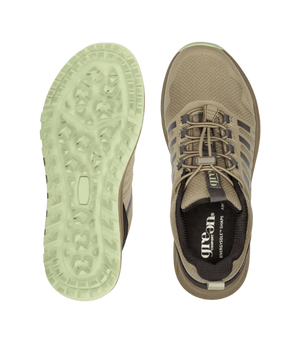 Skoen er udstyret med elastiske snørebånd med aftagelig lås, som gør den nem at tage af og på. Snørebåndet kan justeres og afkortes efter behov, så skoen får en perfekt pasform.