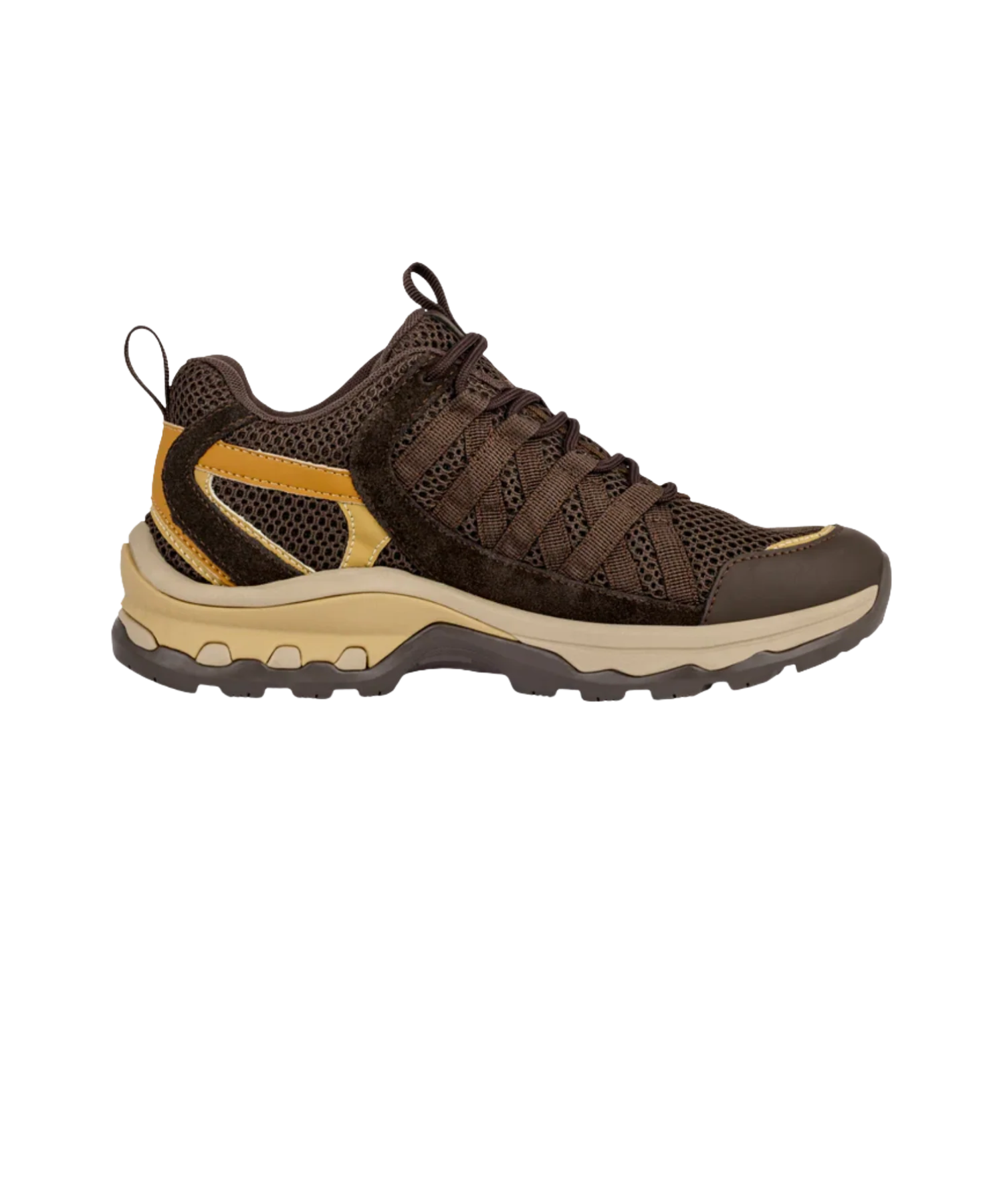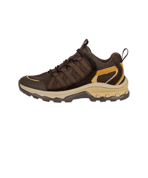 Overdelen er fremstillet i en eksklusiv kombination af mikrofiber, åndbart mesh og blødt ruskind, som sikrer både holdbarhed og god ventilation. Den rummelige H-læst gør modellen ideel til fødder, der har brug for ekstra plads, og i str. 42–43 opleves komforten optimalt – også ved længere tids brug. Med justerbar snørelukning kan pasformen nemt tilpasses individuelt.