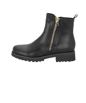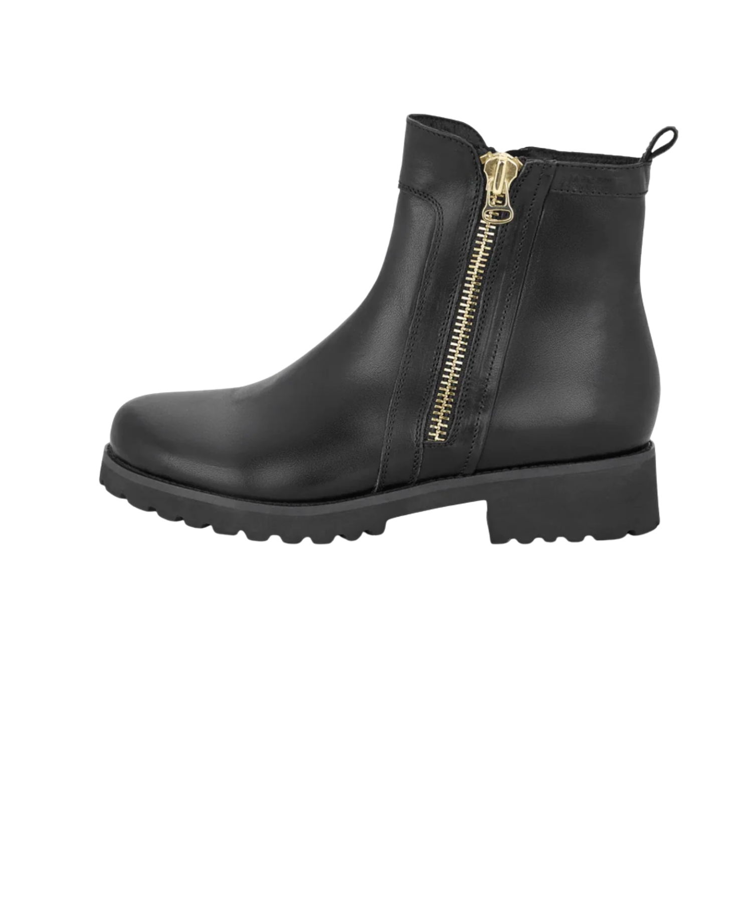 Strike Sigi er fremstillet i skinnende, vegetabilsk garvet læder, som giver støvlen et eksklusivt og tidløst look. Den gyldne lynlås på ydersiden tilfører et feminint og moderne udtryk, der passer perfekt til både bukser, kjoler og nederdele.