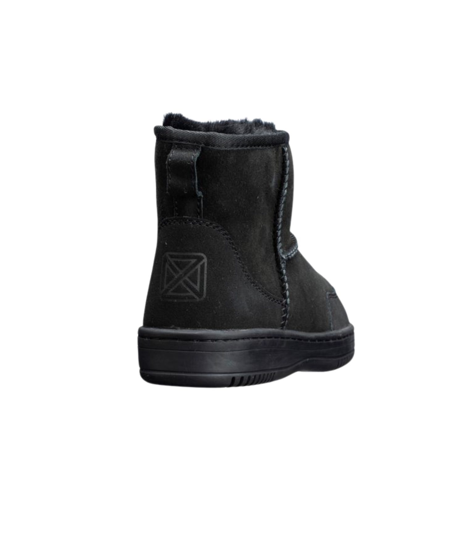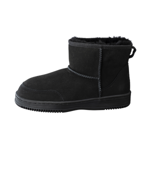 Kortskaftet lammeskindsstøvle i klassisk sort skind