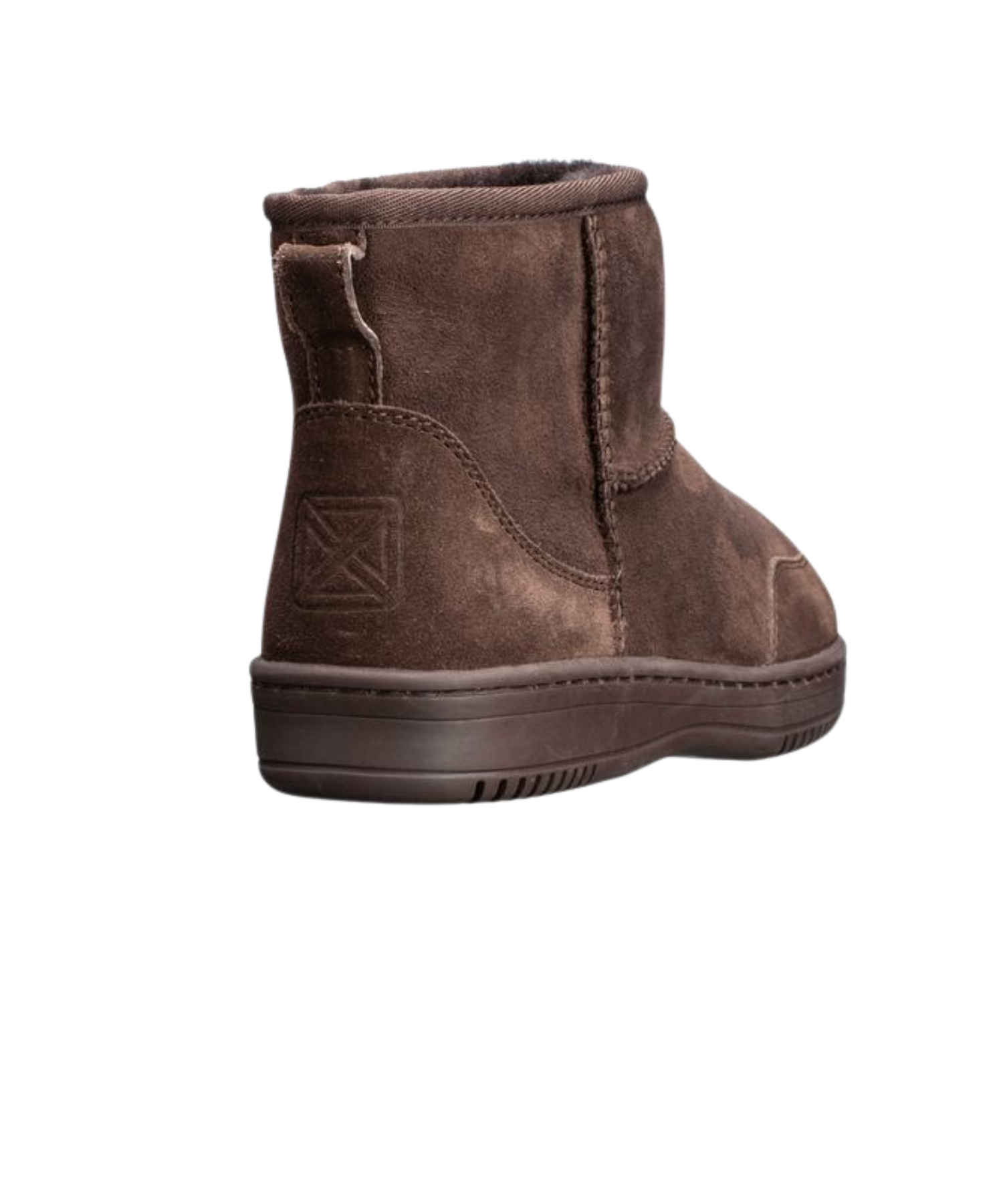 Kortskaftet lammeskindsstøvle i klassisk mørk mokkafarve