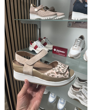 Leder du efter en elegant og komfortabel damesandal i små størrelser? Så er Pie Santo sandal i Beige (artikelnummer 250422-734) det perfekte valg for dig. Denne smukke sandal er designet med fokus på både stil og pasform – ideel til dig med smalle fødder eller behov for små damestørrelser som str. 33, 34 eller 35.