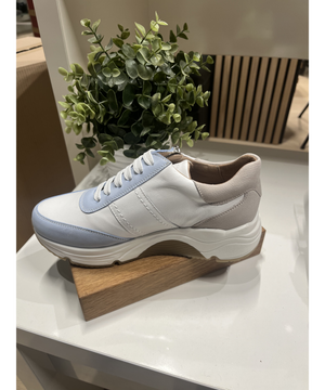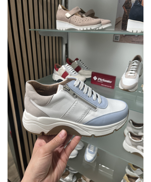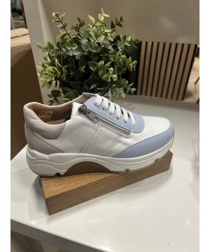 Pie Santo 250706-279 – Hvide sneakers med lyseblå detaljer og lynlås | Str. 33-44 | Vidde G