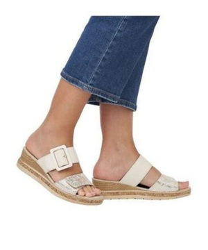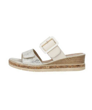 Denne slip-in sandal i lys beige med metal-detaljer passer perfekt til sommergarderoben. Den neutrale farve gør det nemt at matche sandalen med alt fra jeans til kjoler. D3068-60 kombinerer mode og funktion – ideel til både hverdagsbrug og ferien.