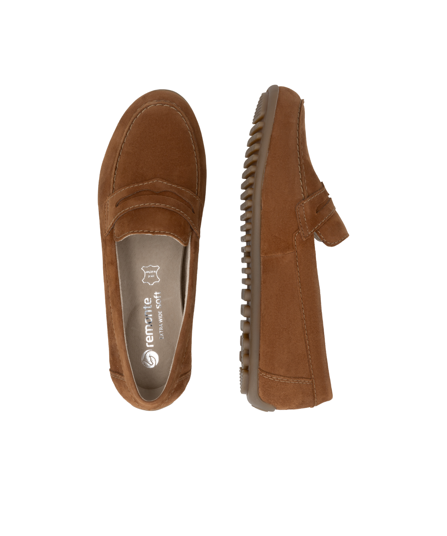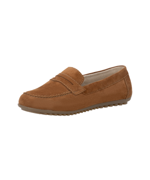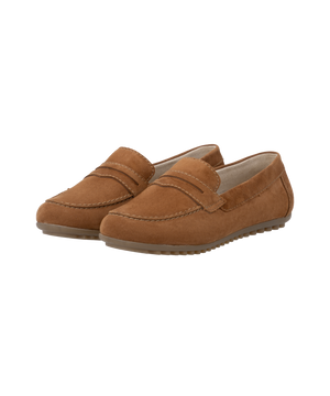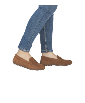 Vælg Remonte brun loafer i ruskind, hvis du ønsker en komfortabel, stilren og alsidig damesko til hverdagsbrug – nu også i store damestørrelser.