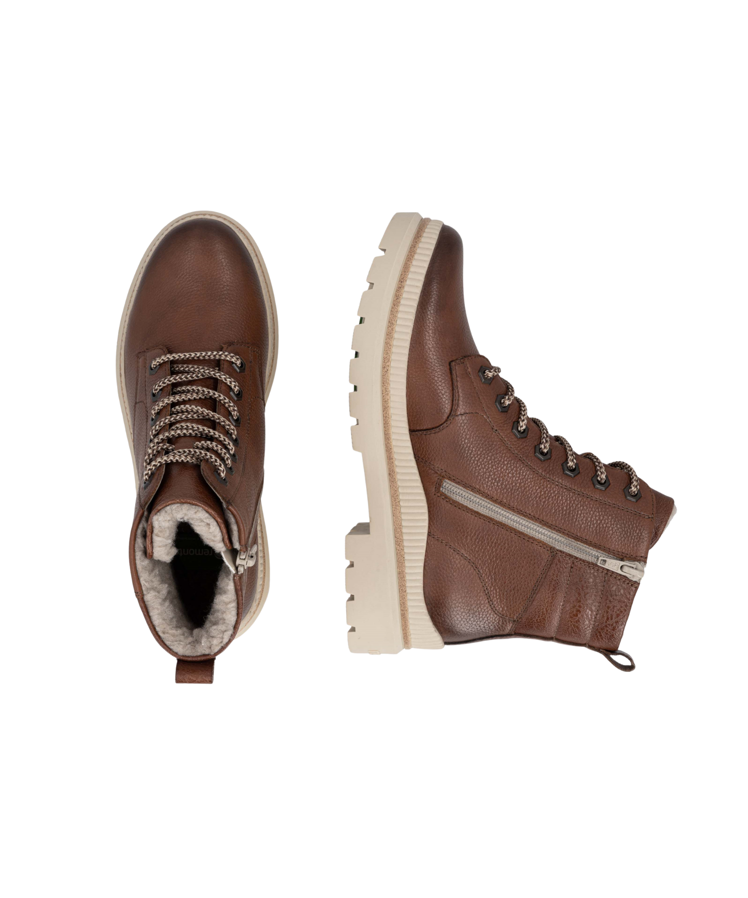 Remonte D0C82-24 – Brun damestøvle med snøre og lynlås i store størrelser