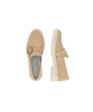 Med deres klassiske design, diskrete syninger og metalspænde på fronten passer skoene perfekt til både hverdagsbrug og mere formelle anledninger. Den praktiske slip-on model gør det nemt at tage skoene af og på, og i størrelse 42 får du god plads til foden – ideel til dig, der ønsker komfort uden at gå på kompromis med stil.