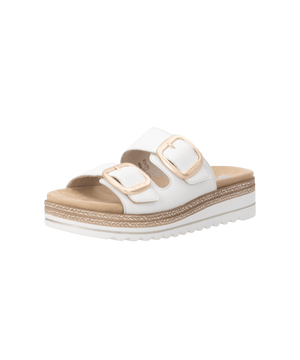 Den elegante hvide farve giver sandalen et friskt og tidløst look, der passer perfekt til sommerkjoler, shorts eller lette bukser. Det praktiske stik-i design gør sandalen nem at tage af og på, samtidig med at den sikrer en behagelig pasform hele dagen. Remonte er kendt for deres fokus på komfort, og denne model er ingen undtagelse.