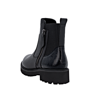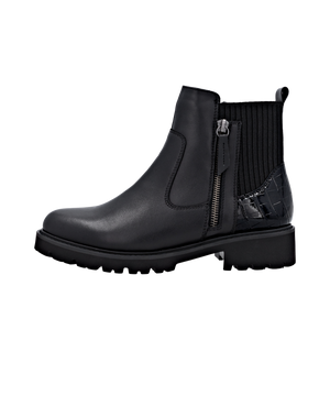D8655-00 er designet med moderne kvinder i tankerne, der ønsker at bevæge sig frit gennem hverdagen uden at gå på kompromis med hverken æstetik eller funktionalitet. Den sorte, elegante overflade giver et klassisk og tidløst udtryk, mens den robuste sål og det varme for sikrer, at støvlen står distancen – uanset vejret.