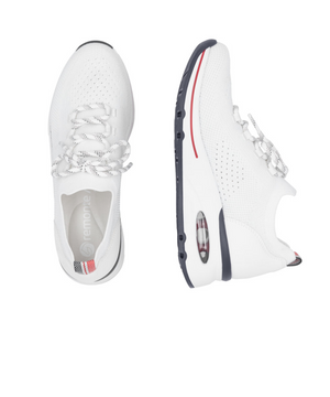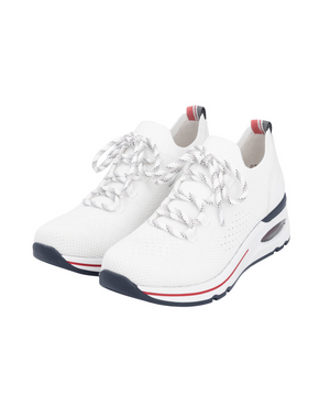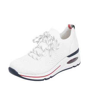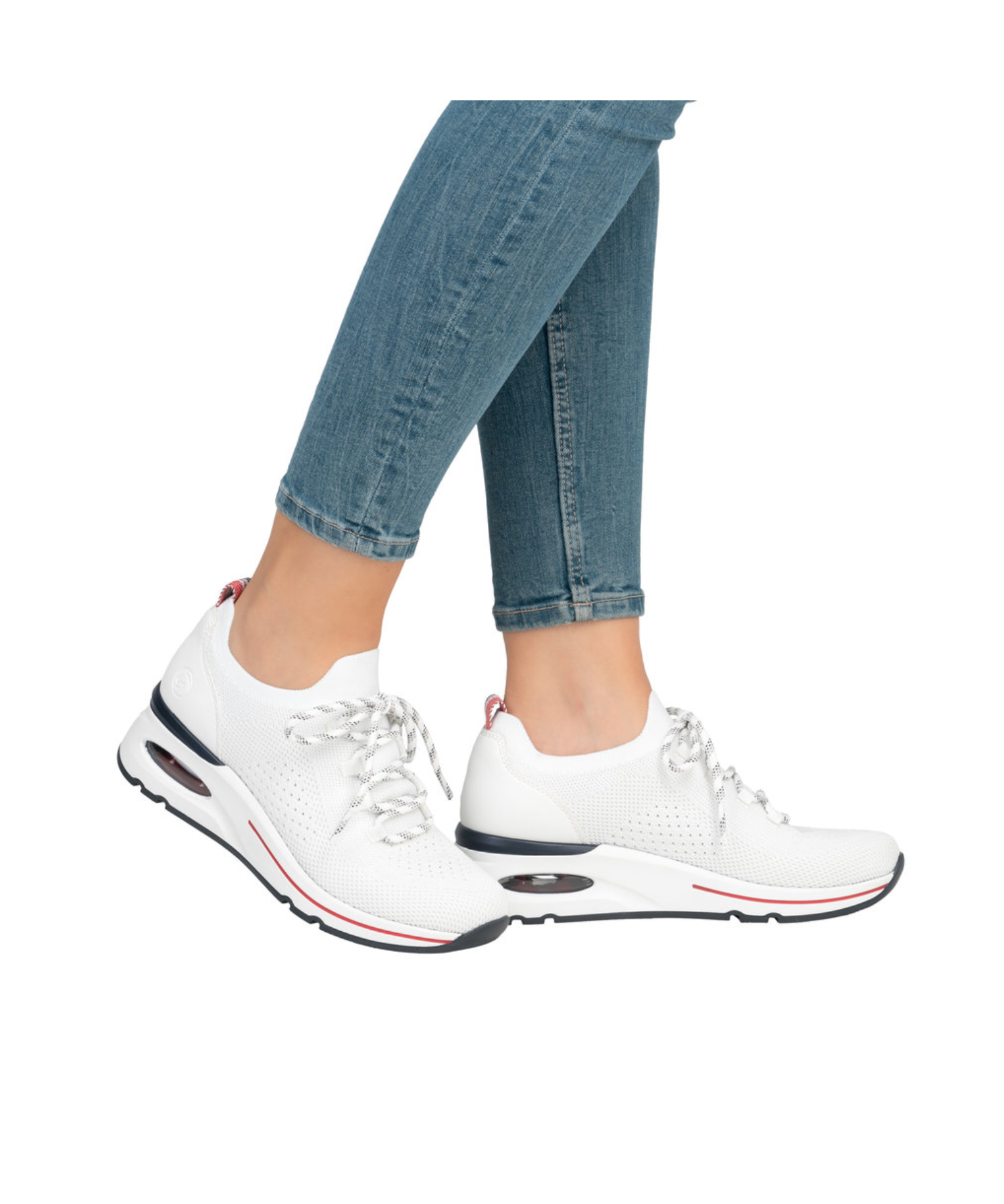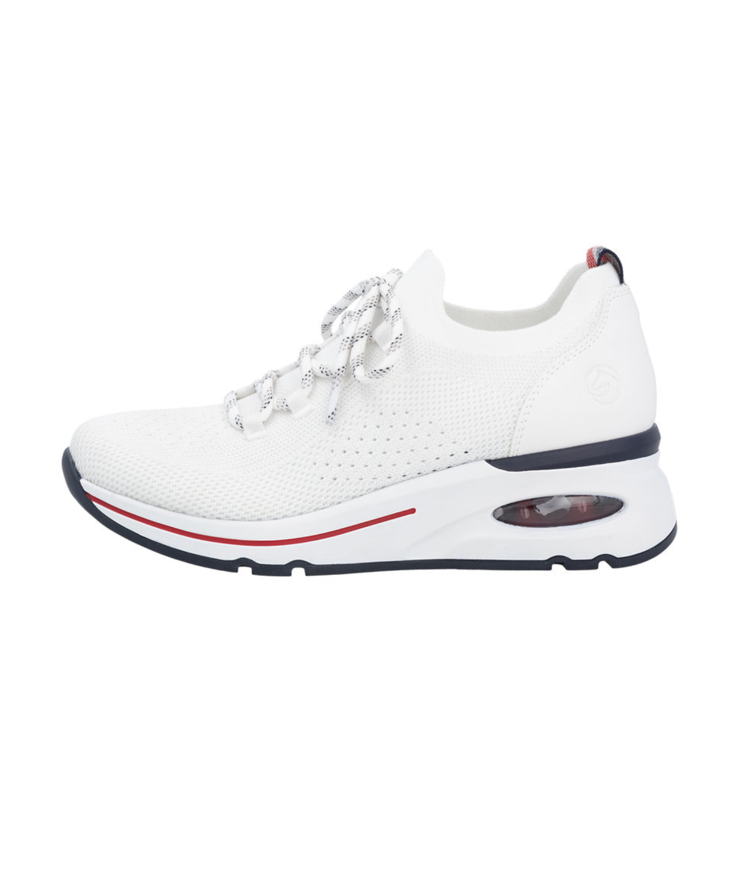 Remonte D2H04-80 er en moderne, hvid damesneaker, der kombinerer et let og luftigt look med praktisk funktionalitet. Det tidløse design gør skoen ideel til både hverdag og fritid – og den hvide farve matcher alt fra jeans til sommerkjoler.