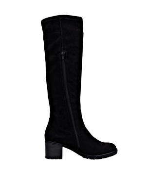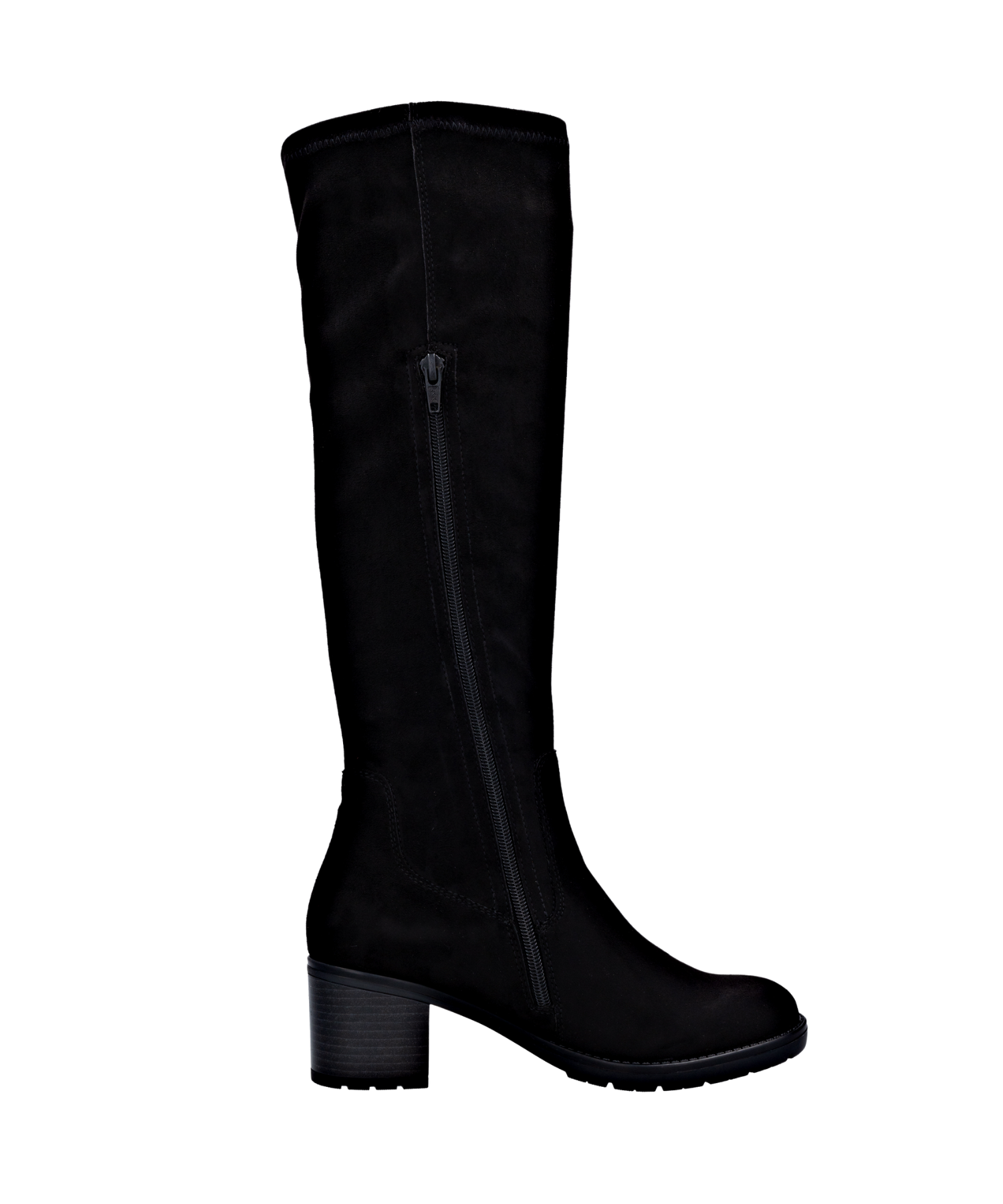Denne elegante støvle er fremstillet i slidstærkt sort skind med flotte detaljer og en praktisk lynlås på indersiden, der gør den nem at tage af og på. Den stabile blokhæl giver en behagelig højde, der både fremhæver benene og sikrer god støtte hele dagen.