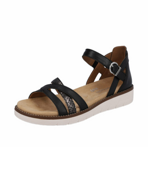 Leder du efter en sort damesandal i store størrelser, der kombinerer komfort, kvalitet og flot design? Så er Remonte D2046-01 det perfekte valg. Denne lækre damesandal fra Remonte fås i str. 42, 43 og 44 – ideel til dig, der har brug for god plads og stadig ønsker en feminin og moderne sandal.