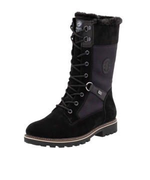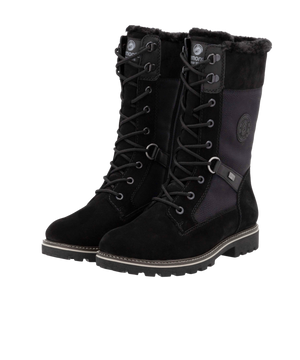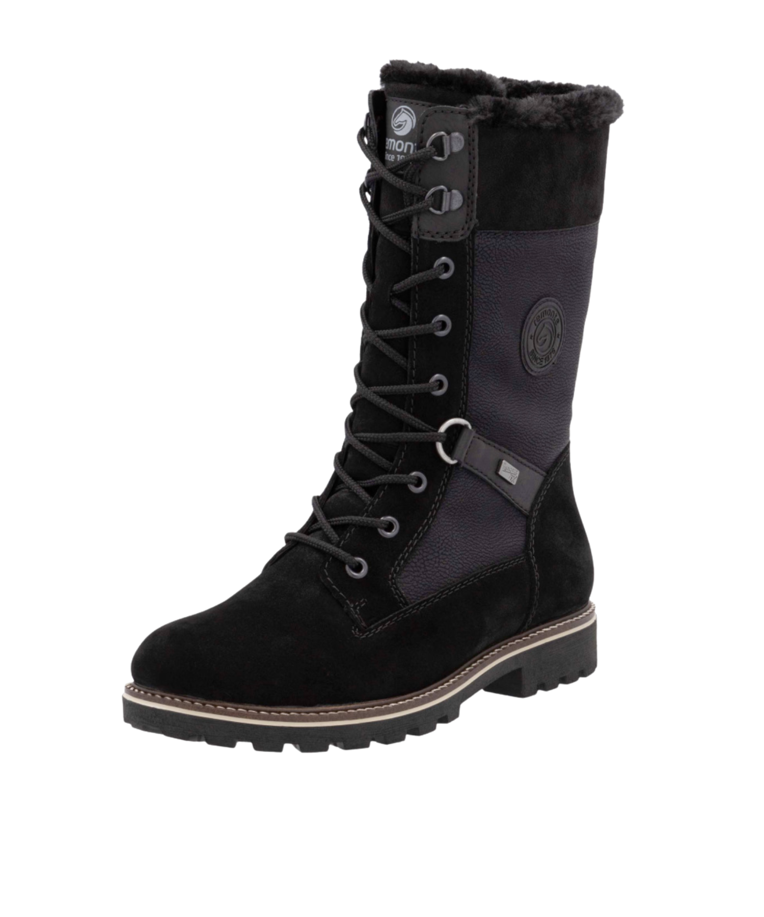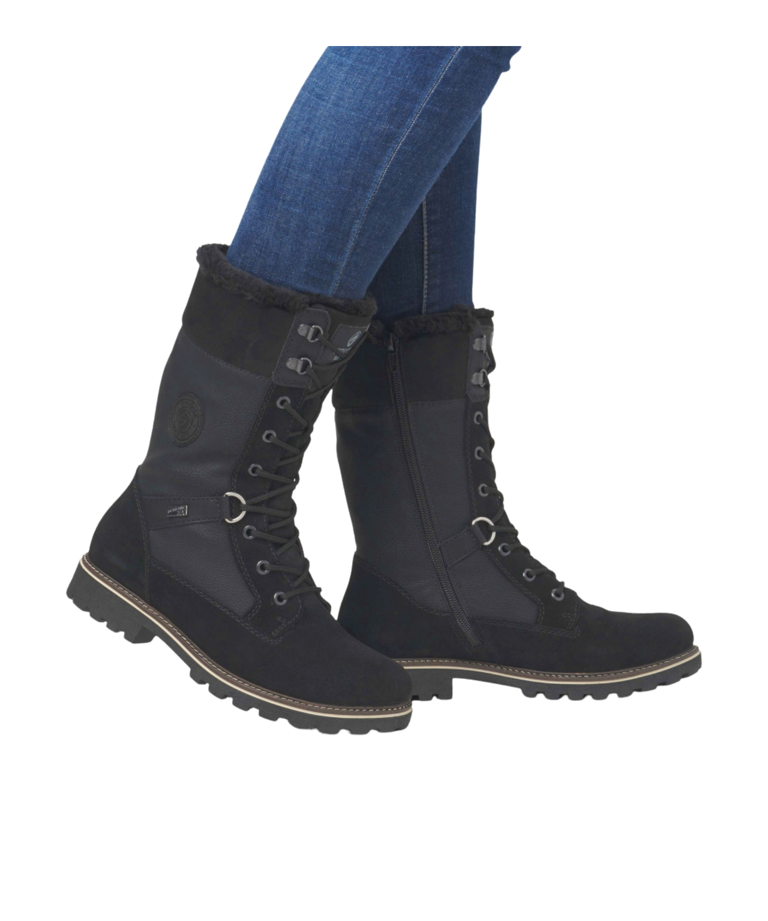 Remonte sort damestøvle med lynlås, foer og snøre – stil, komfort og funktion i ét