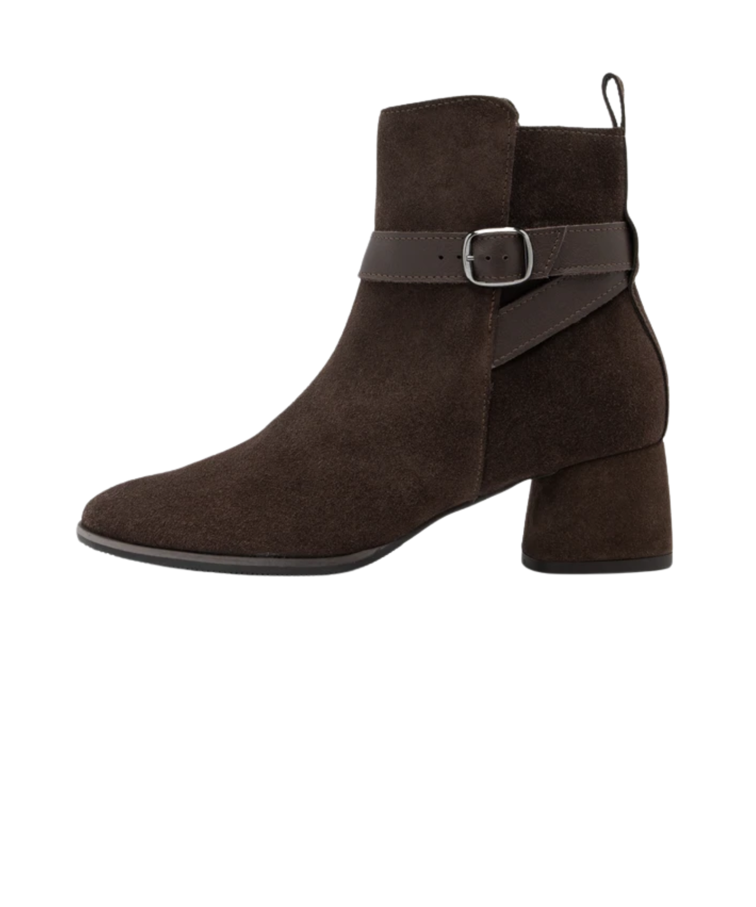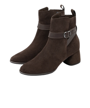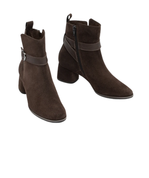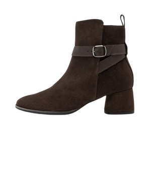 Støvlen er fremstillet i blødt ruskindslæder, som giver et eksklusivt udtryk og en behagelig pasform. Den runde snude og den elegante rem med spænde ved anklen tilfører et feminint og sofistikeret touch. Den 5 cm høje blokhæl giver stabilitet og gør det muligt at have støvlerne på hele dagen – uden at gå på kompromis med komforten.