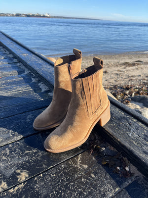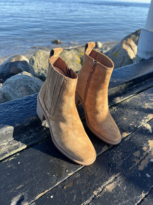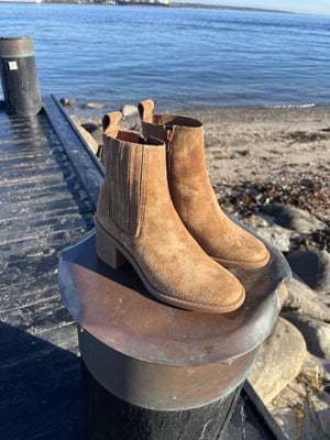 Den har en praktisk lynlåslukning på indersiden, hvilket gør det let at tage støvlen af og på, samtidig med at den sikrer en god pasform. Med en elegant blokhæl på 5 cm får du lidt ekstra højde, uden at gå på kompromis med komforten. Blokhælen giver både stabilitet og et moderne udtryk, hvilket gør støvlen alsidig og velegnet til mange forskellige lejligheder.