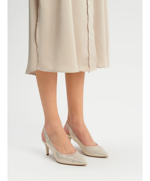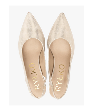 Små damepumps i platinfarvet look fra RYŁKO – Str. 33-34