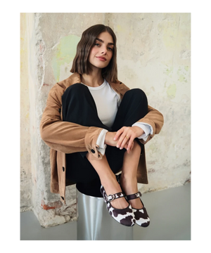 Med Rylko ballerina i ko skind får du en tidløs sko, der kombinerer håndværksmæssig kvalitet med moderne design. Perfekt til kvinder, der sætter pris på både komfort og elegance.