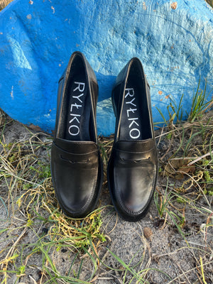Loaferens klassiske sorte farve gør dem tidløse og alsidige, hvilket betyder, at de kan matches med alt fra casual jeans til et mere sofistikeret outfit. Overdelen er fremstillet i blødt og slidstærkt læder, hvilket sikrer både en luksuriøs følelse og lang holdbarhed. Det simple, men raffinerede design er kendetegnet ved Rylkos omhyggelige håndværk.