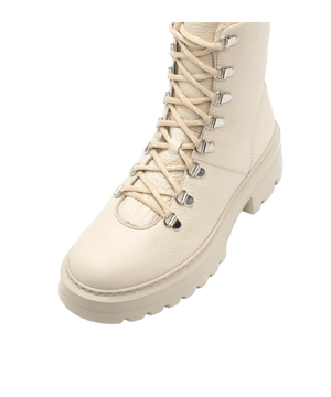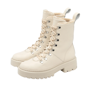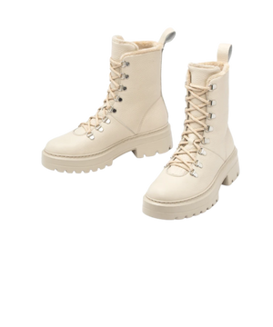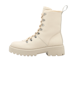 Denne lyse damestøvle er fremstillet i ægte læder med en blød foring, som giver maksimal komfort hele dagen. Den klassiske snørelukning sikrer en god pasform og et tidløst look, der kan styles både til hverdag og fest.