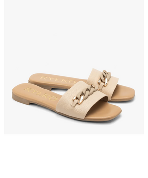 Med en flad sål og blød læderforing sikrer Rylko-sandalen dig behagelig støtte hele dagen. Slip-on designet uden lynlås gør den let og praktisk at tage på – perfekt til travle dage og spontane udflugter.