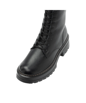Støvlen er fremstillet i ægte læder, hvilket sikrer en høj kvalitet og lang holdbarhed. Med kombinationen af praktisk lynlås og justerbar snøre får du både en perfekt pasform og nem påtagning.