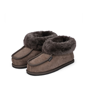 Shepherd Krister er et par klassiske herrehjemmesko, der kombinerer komfort, varme og tidløst design. Hjemmeskoene er fremstillet af 100 % ægte fåreskind, som giver en naturlig varme og blødhed, der gør dem perfekte til kolde dage. Modellen er designet som en praktisk ankelhjemmesko med en bred, foldet kant af fåreskind og et dekorativt kantbånd i tekstil både foran og hele vejen rundt om sålen.