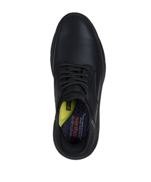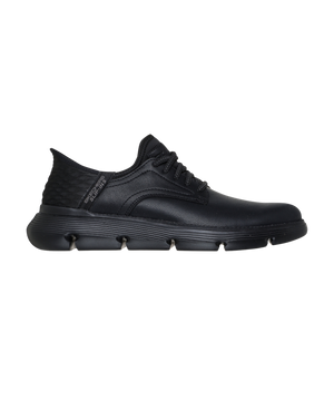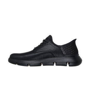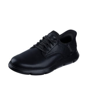 Skechers Garza - Gervin kombinerer praktisk funktionalitet med et rent og professionelt look, hvilket gør den oplagt som både arbejdssko og fritidssko. Det tidløse design i sort læder passer til ethvert outfit – fra jeans og chinos til formelle bukser.